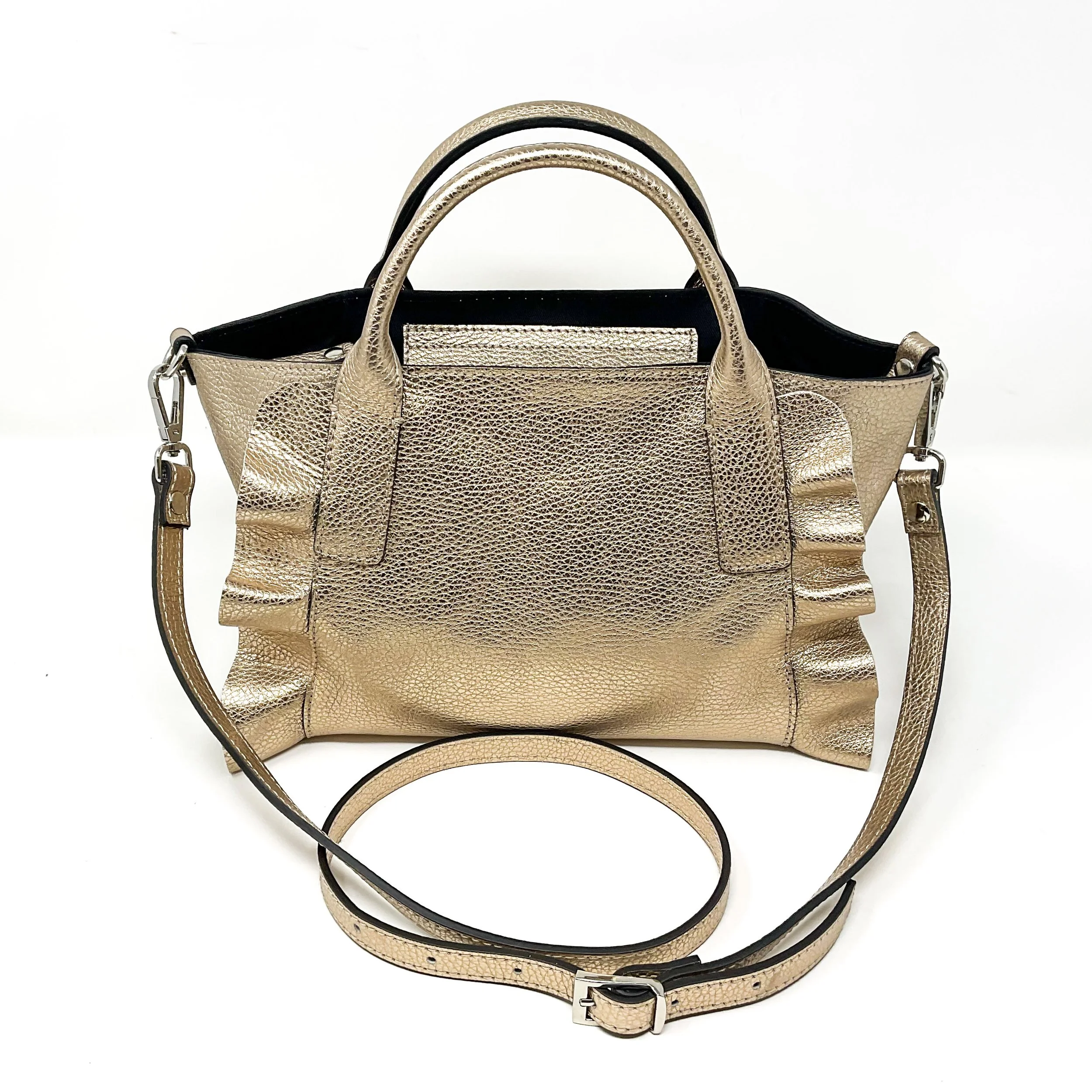 Pebbled metallic calfskin